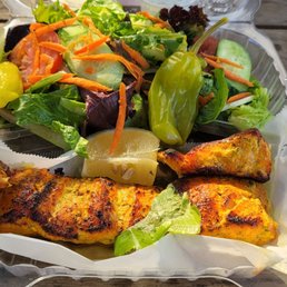The food is quite good, but the food is very expensive for what you are getting. The hummus is better than one would expect at a place like this. Also, the kebabs are all good here. The side salad is so-so.